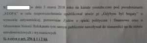 Poniżej zamieszczamy zdjęcie fragmentu aktu oskarżenia oraz zakazany utwór. Niech Polacy dowiedzą się, za co dziś próbuje się posadzić polskich muzyków. Nie za zniszczenie Biblii czy profanację świętości podczas spektaklu „Klątwa” czy „Golgota Piknik”, ale za prawdę o żydowskim antypolonizmie.