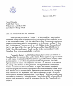 Pismo z Departamentu Stanu USA: Polska ma zrealizować bezprawne roszczenia żydowskie!