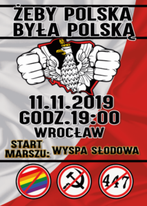 11 listopada 2019 roku ulicami Wrocławia po raz kolejny przejdzie potężny marsz polskich patriotów. – To będzie wielka manifestacja polskości i upamiętnienie odzyskania przez naszą Ojczyznę niepodległości. W tym roku będziemy kroczyć pod hasłem „Żeby Polska była Polską” – informują organizatorzy.