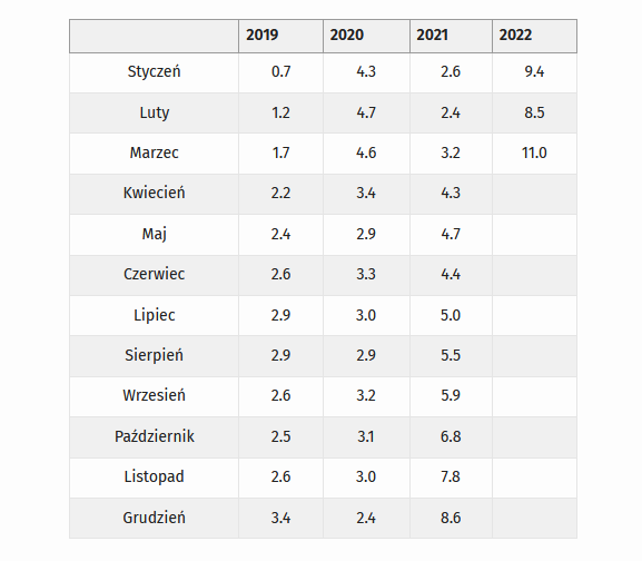 Jeśli popłakaliście się słuchając opowieści Łukaszenki o Polakach stojących na granicy z Białorusią i żebrzących o grykę i sól, to jak czujecie się słuchając opowieści Morawieckiego o Putinie, który skonstruował w Polsce ogniwa łańcucha inflacyjnego bohatersko przerywane przez polski rząd? Spójrzmy na dane Głównego Urzędu Statystycznego pokazujące jak rosła inflacja w Polsce. Przecież gołym okiem widać, że nie zaczęła się ona od inwazji Rosji na Ukrainę w lutym 2022 roku. Inflacja wywołana wojną dopiero przed nami.