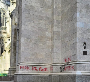 Podczas manifestacji w USA zbezczeszczono katedrą Św. Patryka na nowojorskim Manhattanie wypisując na jej fasadzie wulgarne wyrazy oraz hasło BLM („Black Lives Matter”). Policja opublikowała zdjęcia osób dewastujących katedrę.
