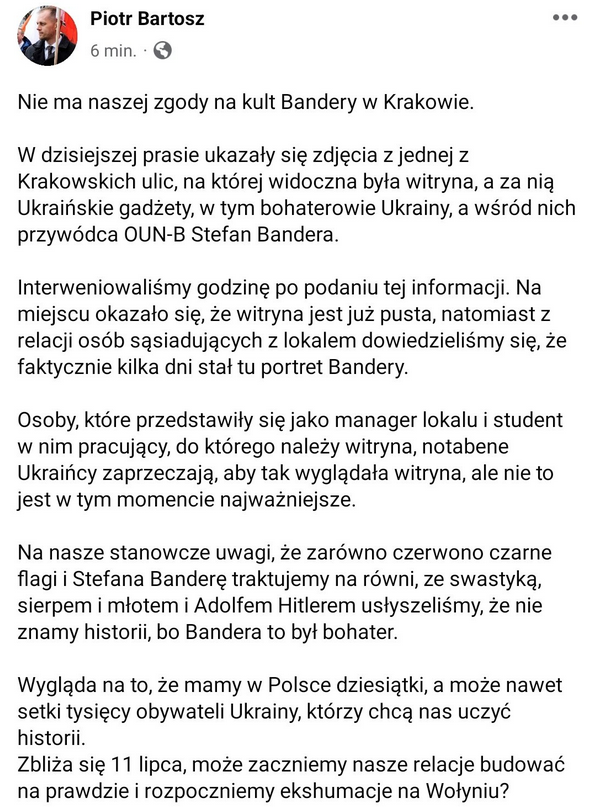 Prezes Ruchu Narodowego Kraków, Piotr Bartosz, poinformował, że natychmiast podejmuje interwencję w tej sprawie. Rezultaty interwencji opisał na Facebooku.