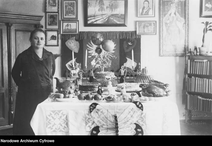 Na przykrytym białym, wykrochmalonym obrusem stole królowały – oprócz ciast – baranki wielkanocne zrobione z cukru lub masła. Baranek z czerwoną chorągiewką i krzyżem lub z napisem „Alleluja” stał na zielonym owsie w centrum stołu, obok talerzyka z poćwiartowanym jajkiem i zapalonej białej świecy. Czasem baranek był pieczony z ciasta chlebowego w metalowej foremce.