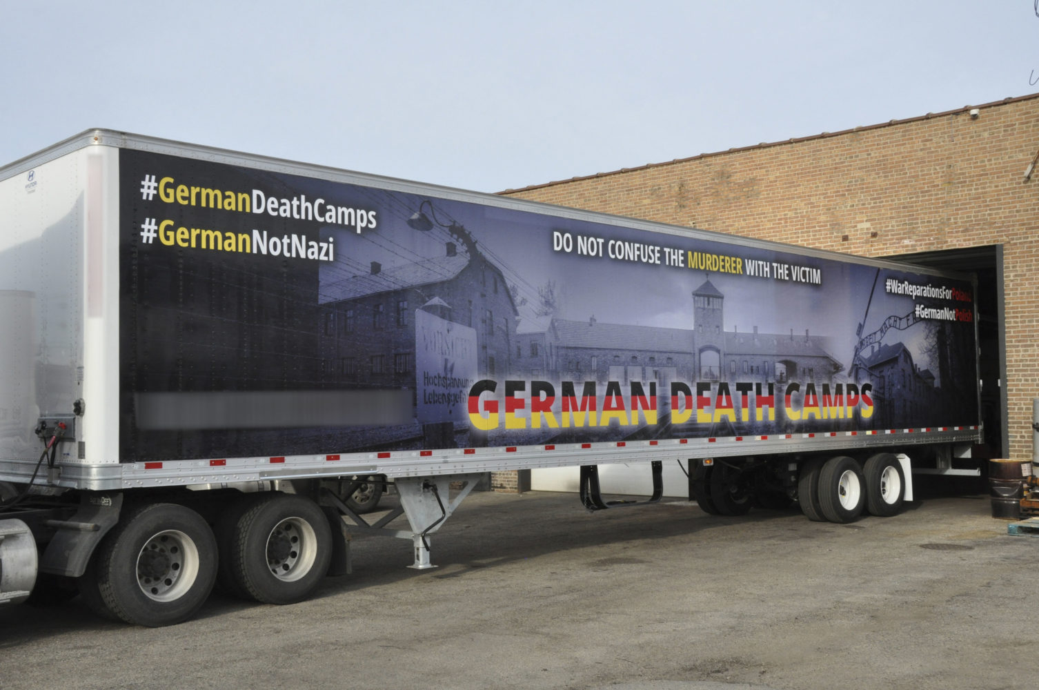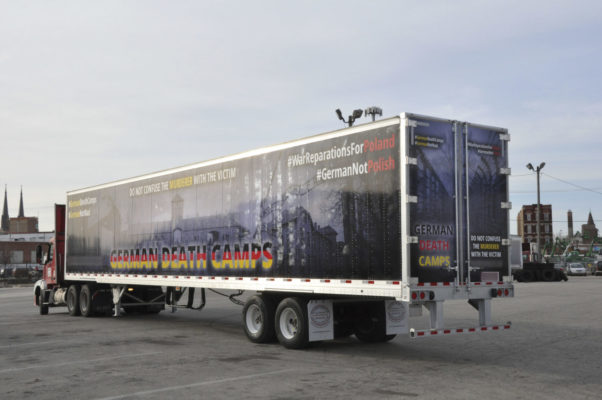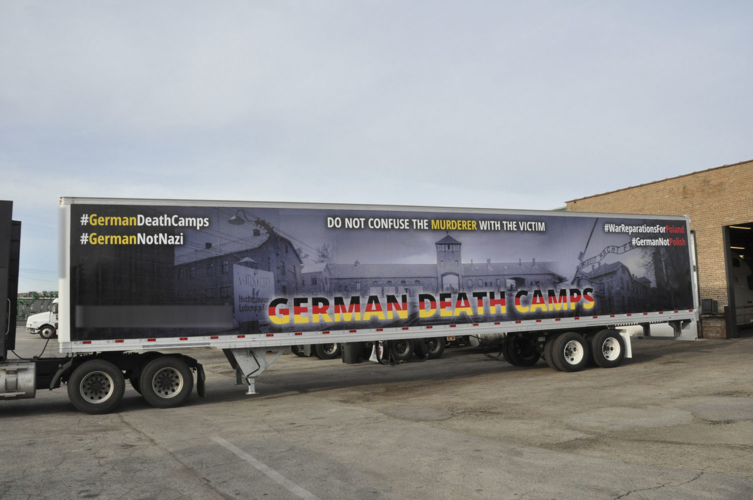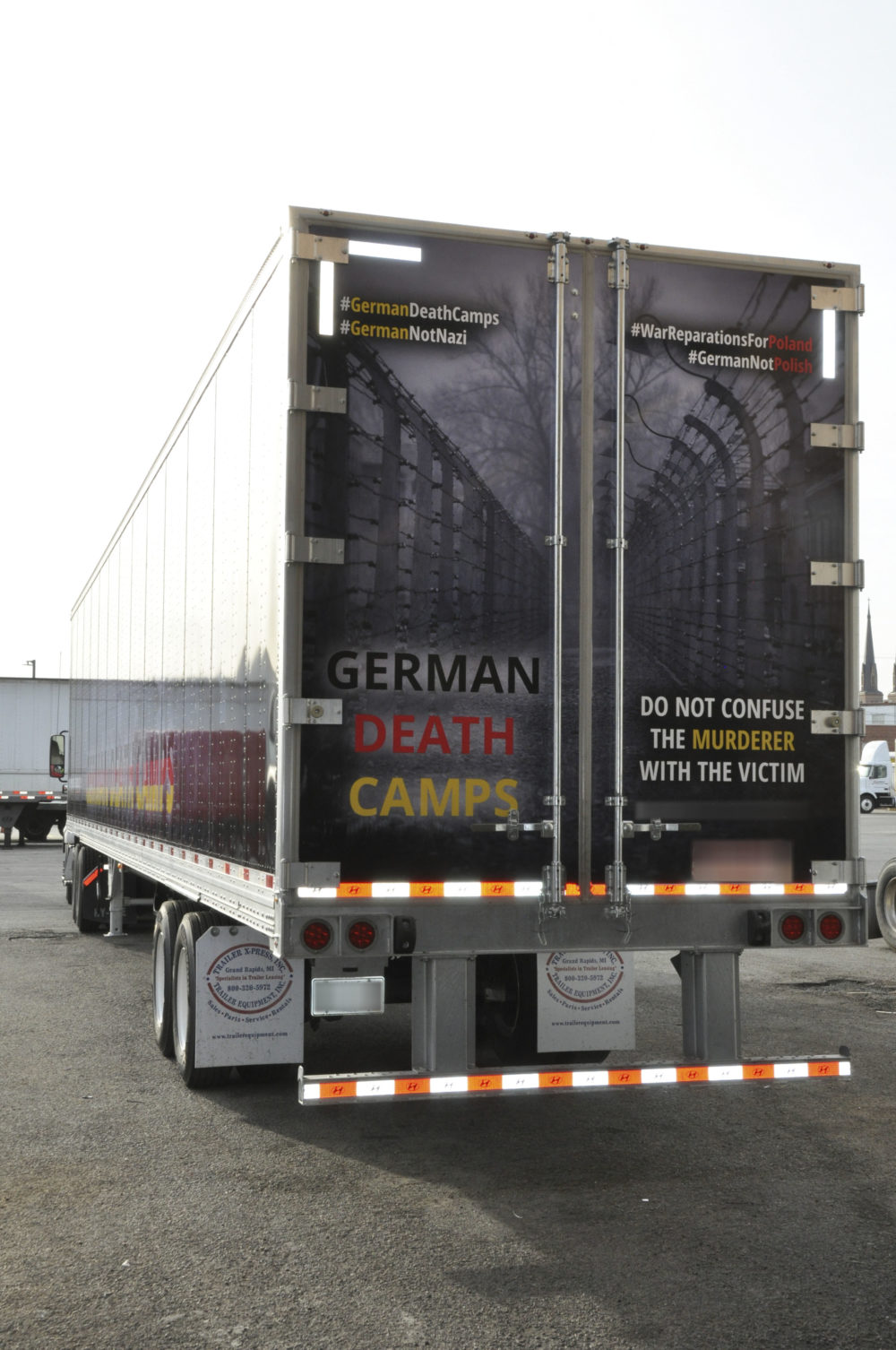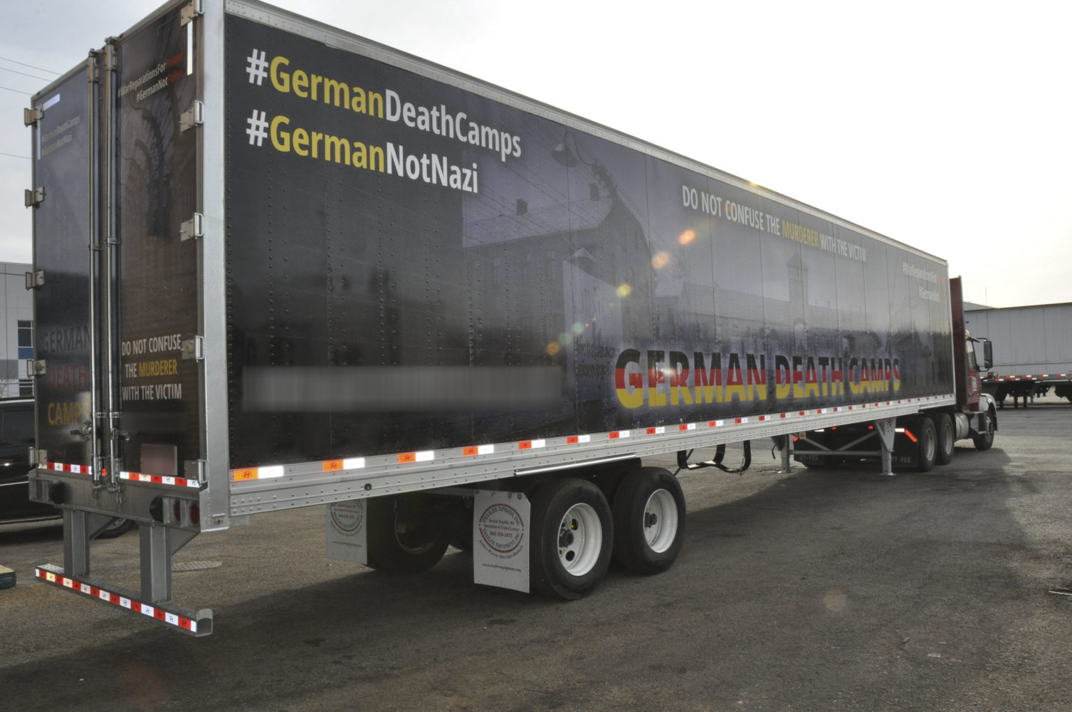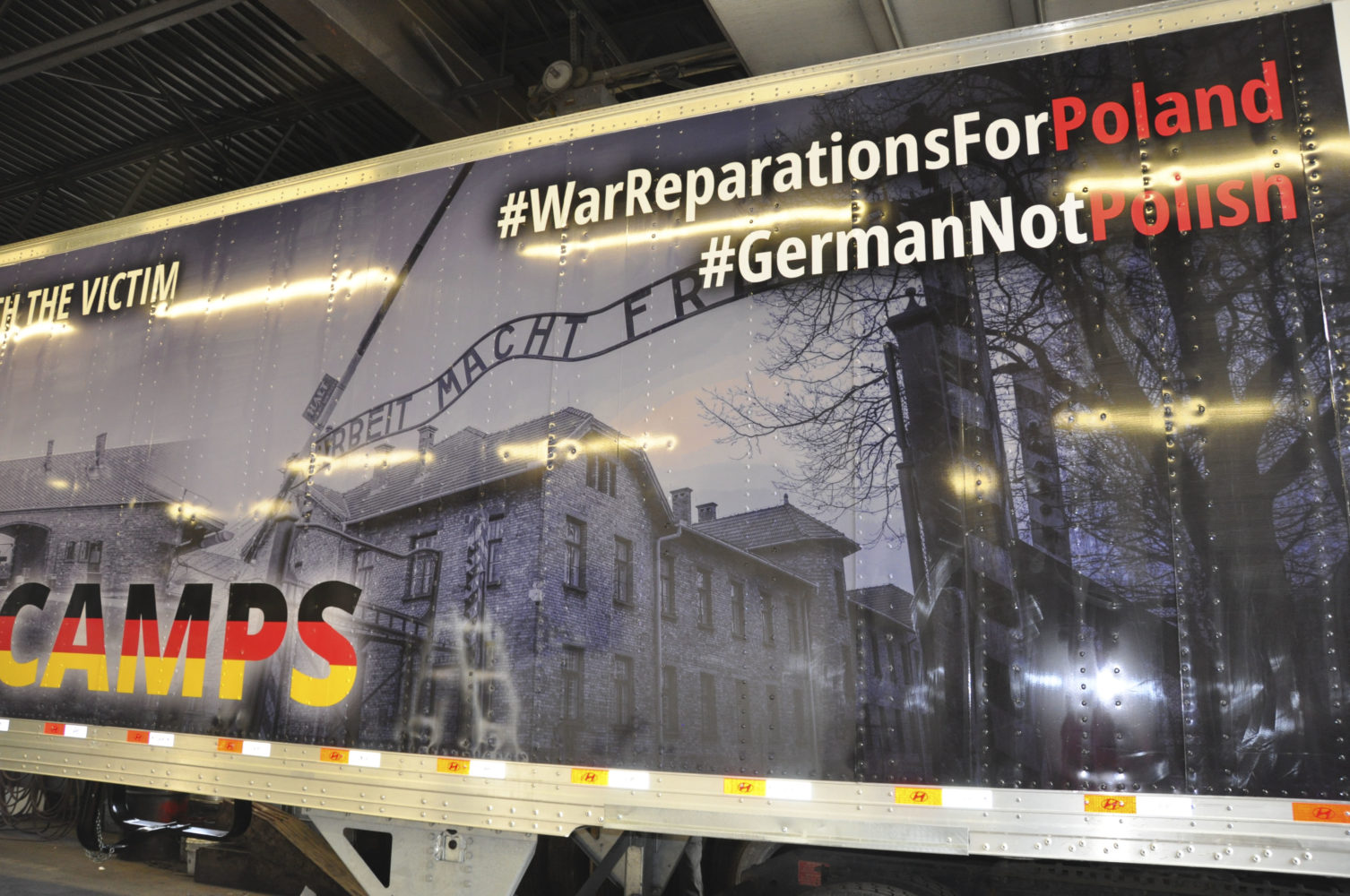 Prawda historyczna o niemieckich zbrodniach jest skrzętnie zakłamywana poza granicami naszego kraju. W ubiegłym roku polska ambasada w Waszyngtonie interweniowała ponad 50 razy w związku z pojawiającym się w Stanach Zjednoczonych określeniem „polskie obozy śmierci”. Aby przeciwdziałać perfidnym kłamstwom przypisującym Polakom partycypację w Holokauście, na amerykańskie drogi wyjedzie TIR z grafiką i napisami przedstawiającymi prawdę historyczną. Na tle wejścia do obozu koncentracyjnego w Auschwitz umieszczono wielkie napisy w języku angielskim „Niemiecki obozy śmierci”, „Niemieckie a nie nazistowskie”, „Niemieckie a nie polskie” „Wojenne reparacja dla Polski”, „Nie myl zbrodniarzy z ofiarami”.