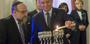 Prezydent, czyli Duda, zapala świece chanukowe. Imprezę organizuje sekta Chabad-Lubawicz, która za największych wrogów uważa katolików. Ideologia sekty to: Żydzi ponad wszystko, a Chabad ponad Żydami; Bóg stworzył świat wyłącznie dla Żydów; Żydzi posiadają boską duszę, natomiast goje dusze zwierzęce. W „Jewish Week” rabin Yitzhak Ginsburg wyznał: „Dusze nie-Żydów są całkowicie diabelskie. Żydzi są ludem wybranym, a wszyscy inni to śmiecie i odpady”. Założyciel sekty Menachem Schneerson, w swych religijnych traktatach głosił: „Cywilizacja gojów powinna zniknąć z powierzchni ziemi; Żydzi to namiestnicy Boga i przeznaczeniem pozostałych ludzi jest służenie Żydom”. Przy innej okazji napisał: „Słowiańskie bydło wypędzimy daleko na północ”. I jeszcze jedno – gdy w Tarnopolu przemianowano tamtejszy stadion na Romana Szuchewycza, wywołało to protesty Izraela, ale milczał prezydent Ukrainy. Milczał też Ihor Kołomojski, główny sponsor sekty Chabad-Lubawicz. À propos Dudy – w czasie święta chanuki w sposób szczególny traktowane są żydowskie kobiety na pamiątkę bohaterskiej Judyty, która podstępnie uwiodła wodza Asyryjczyków, a kiedy ten spał pijany, obcięła mu głowę.