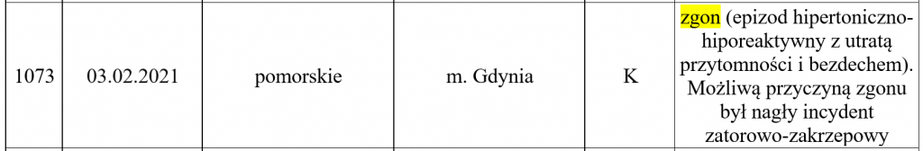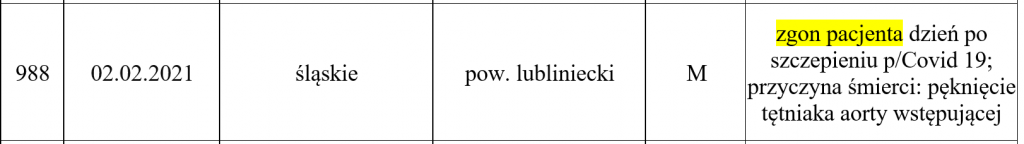 W środę (3.02.2021) na ministerialnej liście niepożądanych odczynów poszczepiennych po szczepieniu na Covid-19 pojawiła się informacja o kolejnych pięciu zgonach. To już 10 przypadków oficjalnie odnotowanych od rozpoczęcia szczepień 27 grudnia 2020 roku. Stowarzyszenie STOP-NOP informuje, że otrzymało 23 zgłoszenia o zgonach po zaszczepieniu na Covid-19.
