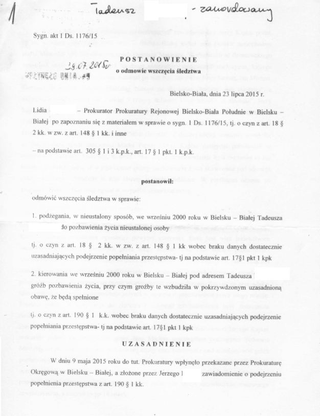 Wreszcie, dlaczego złożone przez Bednarza doniesienia do prokuratury nie nadało biegu sprawie, ale, co dziwniejsze, nie odmówiono mu wszczęcia śledztwa? Podobno nie ma żadnych wniosków o odmowie wszczęcia postępowania, czy umorzeniu śledztwa. Nie dziwi Cię to? Jeśli Cie to nie dziwi, to weź telefon i zadzwoń na Policję, że na dworcu w Twojej miejscowości jest bomba. Możesz nawet bełkotać niewyraźnie a zobaczysz, że w mig pojawią się odpowiednie służby, by zabezpieczyć teren. Jeśli alarm okaże się fałszywy, to nie zdziwi Cię również fakt, że zostaniesz pociągnięta do odpowiedzialności.