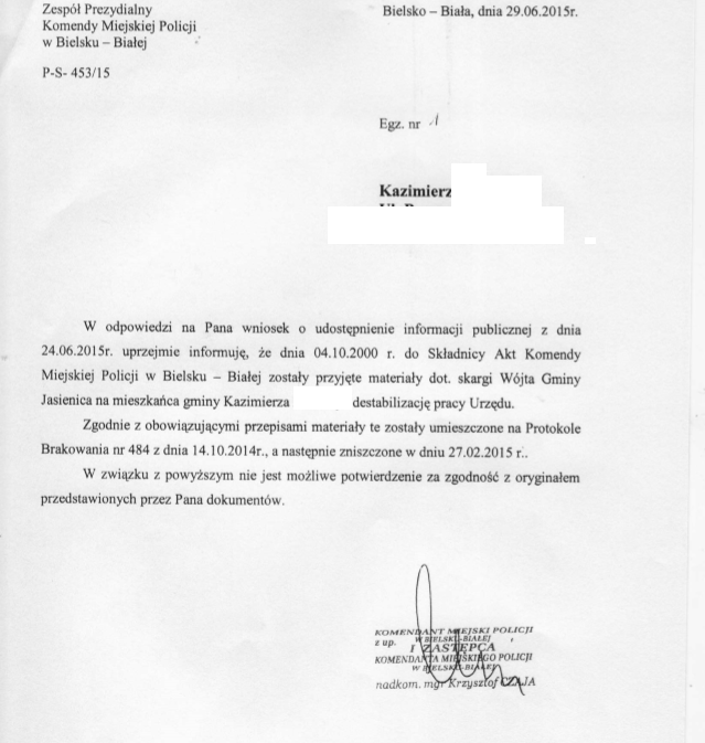 ze zgloszeniami Bendarza nic sie nie robi bo sa bez sensu . Proste.