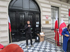 Obecni byli również przedstawiciele innych organizacji prawicowych działających w Wielkiej Brytanii, m.in. lidera Stowarzyszenia Patriotycznego Ogniwo, Mariusz Zawadzki.