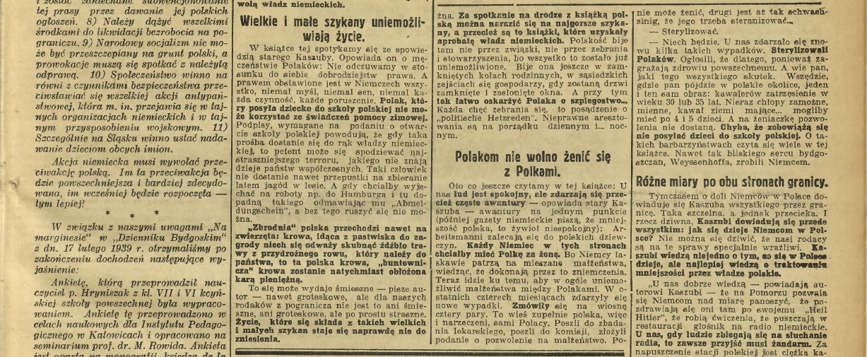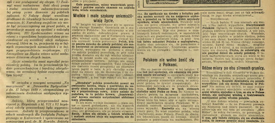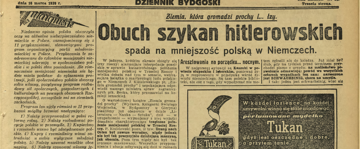 14 Obuch szykan hitlerowskich spada na mniejszość polską w Niemczech, „Dziennik Bydgoski” 1939, nr 62, s. 3.