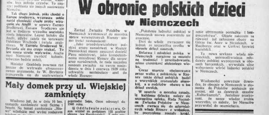13 W obronie polskich dzieci w Niemczech, „Pielgrzym” 1939, nr 75, s. 1.