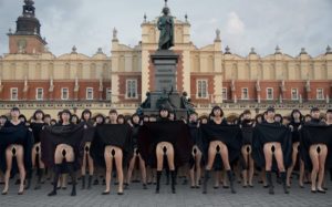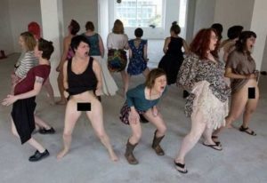 Liderka nazi-feministek: – Tak! Obyczaj ‘ana-suromai’ (z greckiego: ανασυρομαι – podnieść ubranie) był praktykowany już w czasach antycznych, a nawet w okresie hordy pierwotnej. Był to rytuał dobrowolnego obnażania przez kobiety swoich genitaliów, związany z kultem waginy, z chtonicznymi bóstwami płodności, z kosmicznymi siłami równowagi i rozwoju. To publiczne okazywanie płci jako demonstracja mocy kobiet! Nawiązując do tego obyczaju zorganizowałyśmy kampanię feministyczno-postępowego buntu, wykrzyczenia i wybrzmienia intelektualno-mentalnego sprzeciwu wobec szowinistyczno-niemoralnej dominacji penisa, faszystowsko-samczych konwenansów oraz patriarchalno-wulgarnego społeczeństwa. Akcja ‘Zadzierając kiecę’, na Zachodzie hasło brzmiało: ‘Reclaim your c..nt’, to jest: ‘odzyskaj – zareklamuj swoją cipkę’, odbiła się bardzo szerokim echem w różnorodnych mediach, docierając do rozmaitych środowisk.