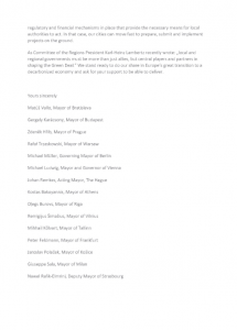 W środę (12.02.2020) prezydenci 15 miast, w tym. min. Warszawy, Budapesztu i Berlina, zaapelowali do Komisji Europejskiej o bezpośrednie wypłaty środków unijnych przeznaczonych na Zielony Ład. Jednocześnie zadeklarowali całkowite poparcie dla tego programu i stwierdzili, że „walka ze zmianami klimatycznymi zostanie wygrana lub przegrana w miastach”.