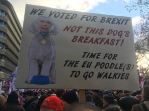W niedzielę, 9 grudnia 2018, tłumy Brytyjczyków sprzeciwiających się polityce rządu Theresy May i Unii Europejskiej wyszły na ulice Londynu pod przewodnictwem prawicowego aktywisty i dziennikarza Tommy’ego Robinsona oraz partii UKIP, by zamanifestować swoje niezadowolenie. Przypomnijmy, od czasu referendum w 2016 roku rząd Jej Królewskiej Mości stara się dojść do porozumienia z Brukselą w kluczowych sprawach gospodarczych i migracyjnych. Od niedawna premier Theresa May stara się przekonać parlament i Brytyjczyków do umowy, którą jej rząd wynegocjował – umowy, która jest skrajnie niekorzystna dla Wielkiej Brytanii. Komentatorzy wskazują, że gdyby parlament zgodził się na „deal” premier May byłby to Brexit bez Brexitu, Theresa May natomiast oznajmiła, że wyjścia są trzy: parlament zaakceptuje jej umowę; Brexitu nie będzie wcale (Trybunał Sprawiedliwości UE właśnie orzekł, że Wielka Brytania może bez konsekwencji wycofać się z Brexitu i pozostać w UE na dotychczasowych zasadach); lub będzie miał miejsce tak zwany „twardy Brexit”, czyli wyjście bez żadnej umowy. Tę ostatnią opcję jako jedyną biorą pod uwagę manifestanci z niedzielnego wydarzenia.