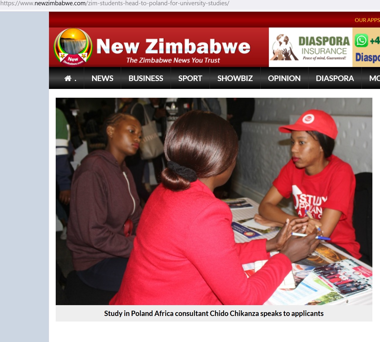 Na stronach internetowych z Zimbabwe można znaleźć wiele informacji na temat tego jak można dostać się do Polski i uzyskać wizę studencką. Wskazuje się, że otrzymanie wizy studenckiej w Polsce nie jest trudne. Poniżej zamieszczamy zrzut ekranu z portalu newzimbabwe.com.