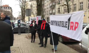 Oczywiście Obywatele RP zorganizowali pod budynkiem prokuratury akcję poparcia dla „Farmazona” pod hasłem „Stop represjom”. Przyszło zaledwie kilka osób, co dość dobrze pokazuje, że nawet zaangażowani „obrońcy demokracji” nie mają chęci marznąć w obronie agresywnego chama „Farmazona”.