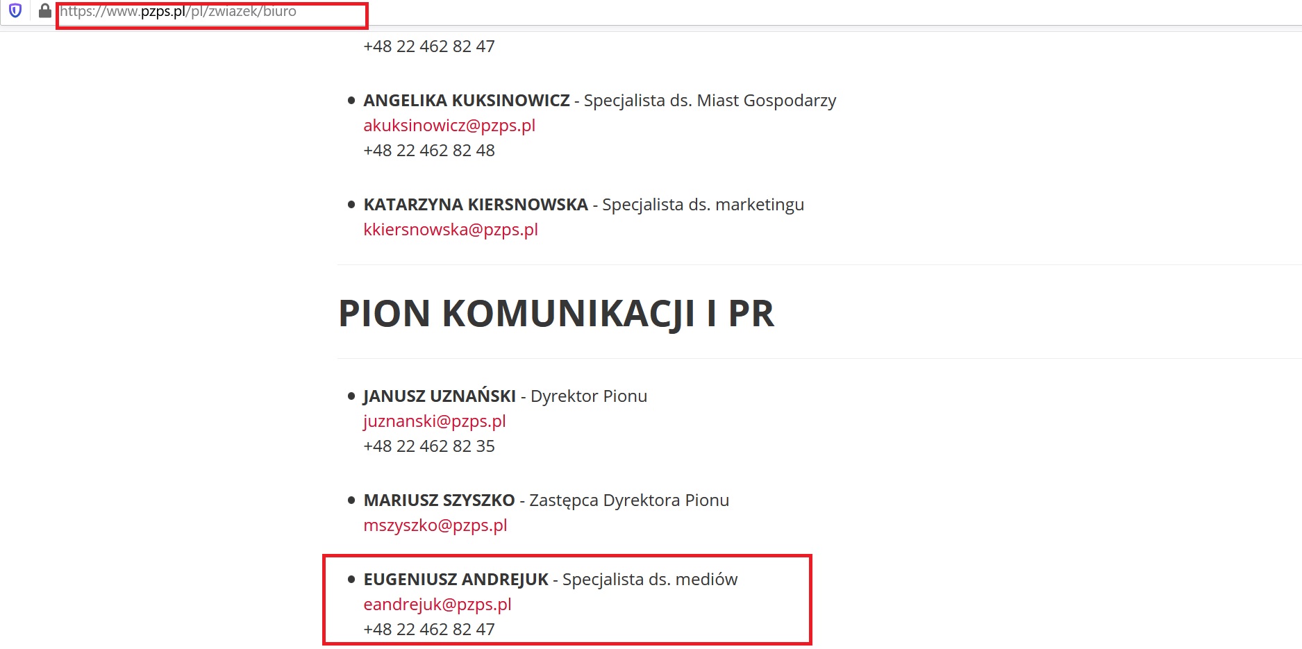 Zrzuty ekrany wypowiedzi Andrejuka oraz zrzut ekranu ze strony PZPS: