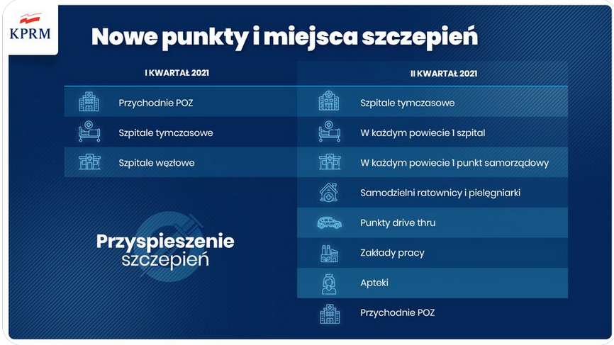 Do tej pory szczepienia można było wykonywać tylko w przychodni i szpitalu. Według nowych przepisów będzie można je wykonywać także w aptekach, punktach drive-thru, punktach prowadzonych przez samorządy i zakładach pracy.