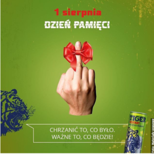 Tiger Energy Drink to marka napoju bezalkoholowego należąca do byłego boksera Dariusza Michalczewskiego sympatyzującego z Platformą Obywatelską. Michalczewski wspiera również ruch LGBT, Ryszarda Kalisza uważa za „wielkiego człowieka” i podziwia Władysława Frasyniuka. Nikogo zatem nie powinno dziwić, że napój, którego nazwa pochodzi od pseudonimu sportowego boksera, został 1 sierpnia zareklamowany grafiką, na której widnieje gest „f**k” i napis „Chrzanić to, co było. Ważne to, co będzie”. Tak Tiger Energy Drink uczcił 73. rocznicę Powstania Warszawskiego.