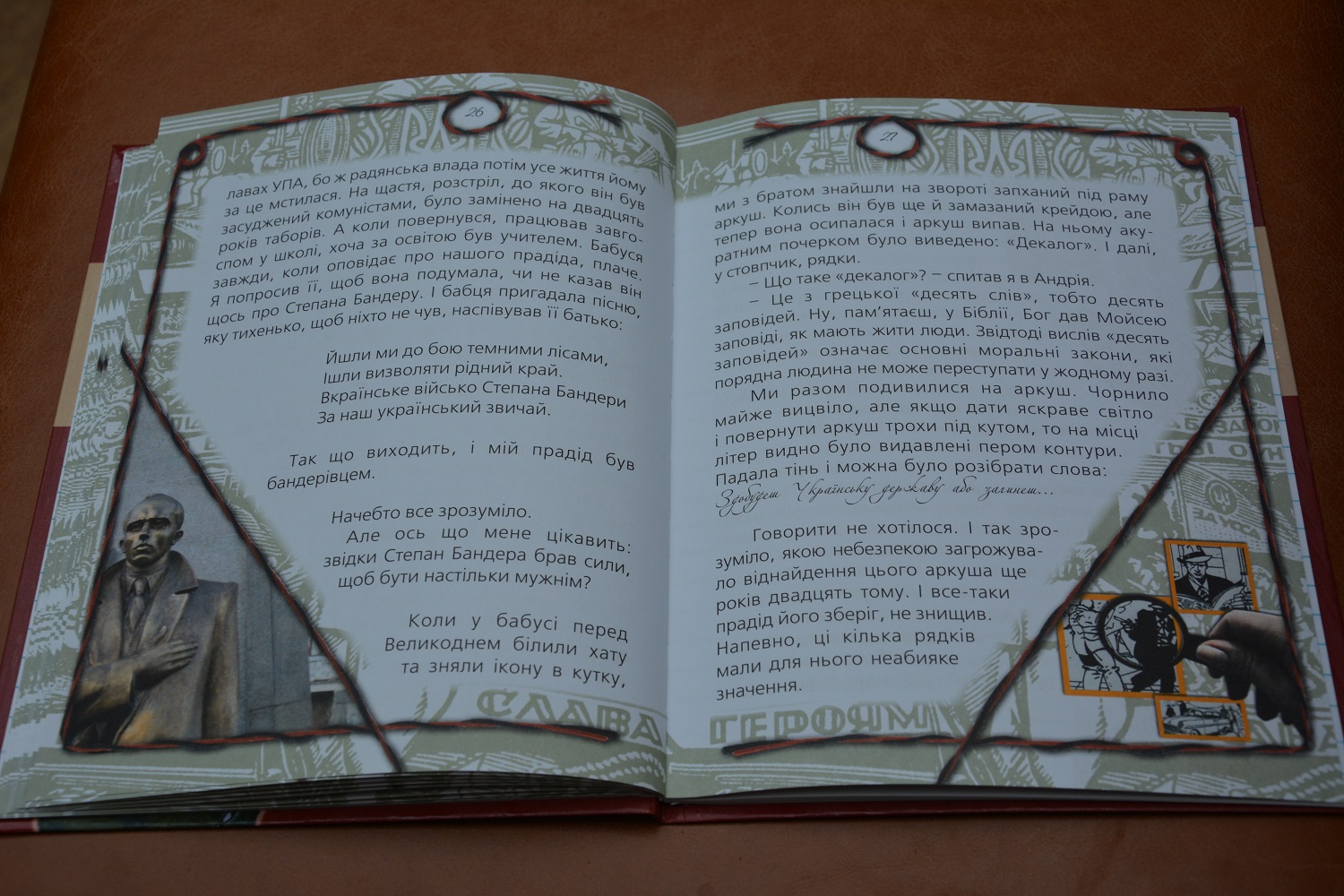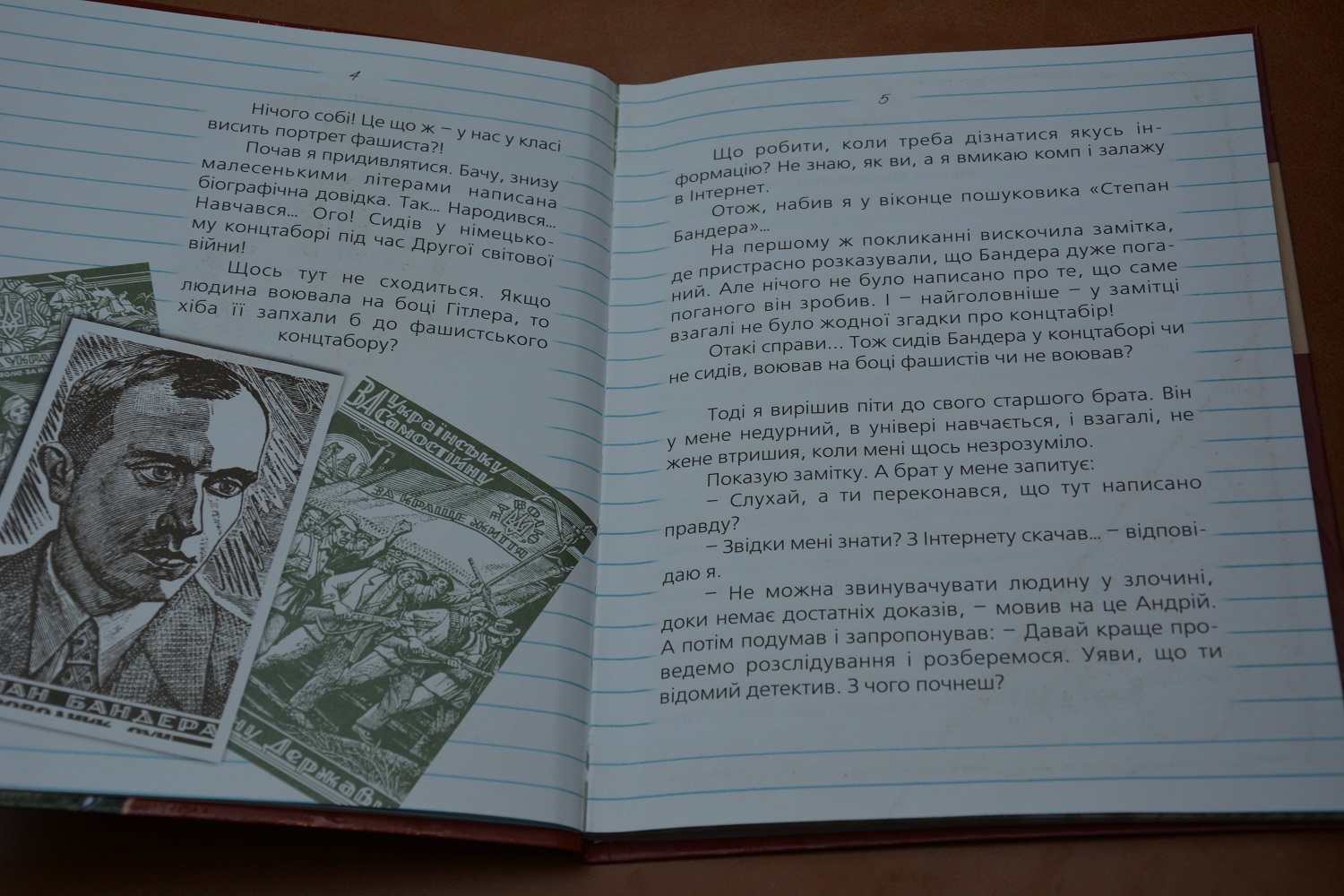Członkowie OUN planowali przeprowadzenie narodowej rewolucji. – planowali powstanie przeciwko polskim i sowieckim okupantom, aby odbudować niepodległą Ukrainę. – Jak to sowieckich? – całkowicie straciłem orientację. – Ale tu zostało napisane, że Bandera żył w Galicji, a Galicja należała wtedy do Polski? – Prawidłowo, – zgodziła się bibliotekarka. – W tym czasie Ukraina znowu była podzielona między dwa państwa. Większa część znajdowała się w składzie Związku Radzieckiego, a zachodnie terytoria były pod władzą Polski. Ale w Polsce również działała Partia Komunistyczna, która otrzymywała wsparcie finansowe z ZSRR – jest napisane na 10 stronie podręcznika.