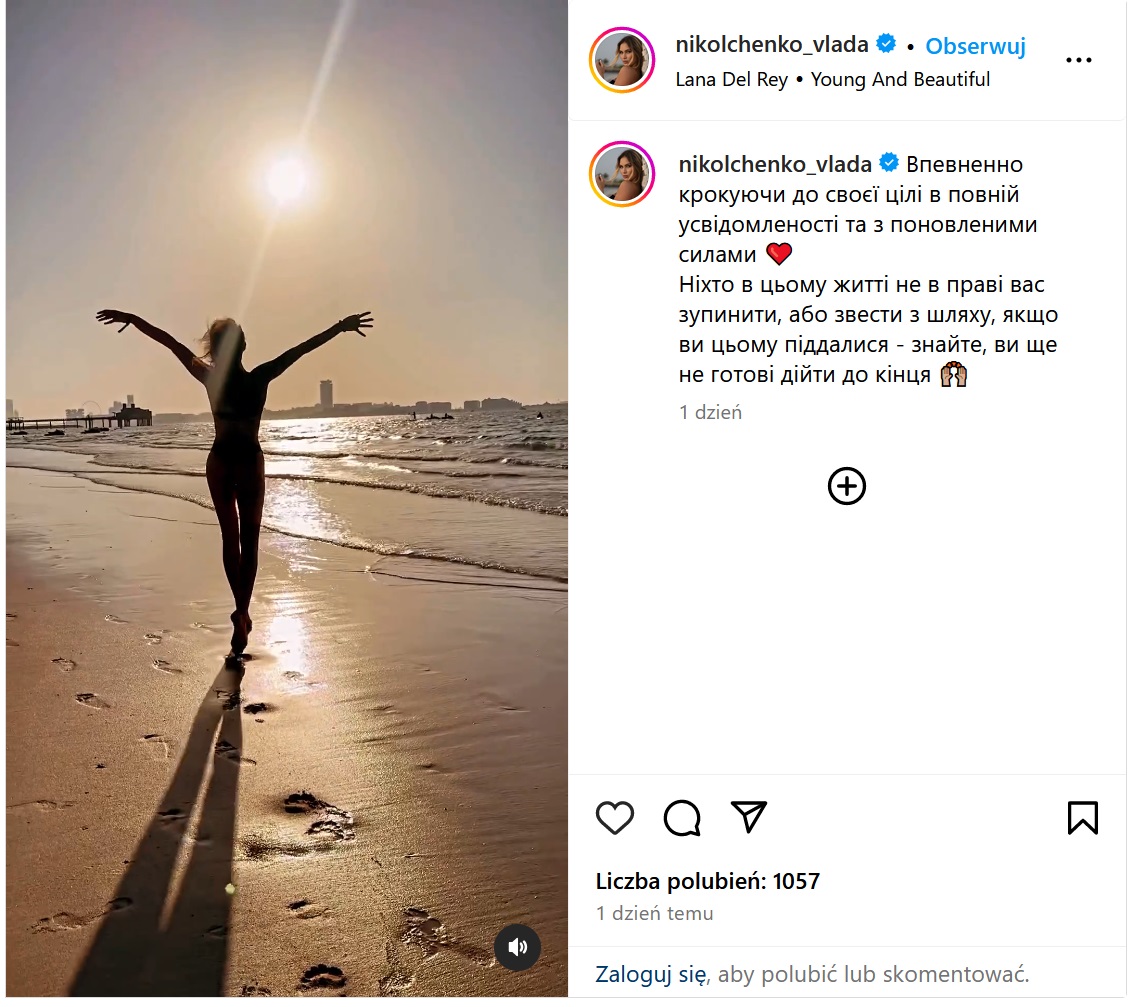 Po kilku dniach przerwy od Instagrama, Nikolczenko opublikowała wpis, w którym próbuje dowieźć, że nie załamała się wyrzuceniem z reprezentacji: Idę do celu z pełną świadomością i nową siłą. Nikt w życiu nie ma prawa cię zatrzymać – napisała pod zamieszczonym filmem, na którym radosna biega po plaży w stroju kąpielowym.