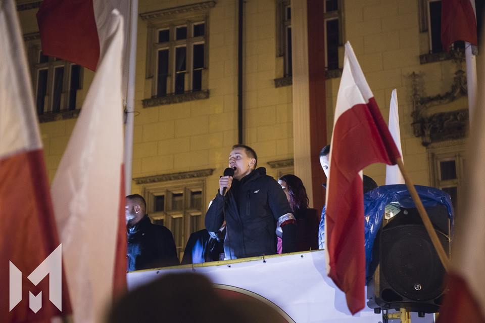 Śmiało mogę stwierdzić, że to była najlepsza manifestacja, w jakiej kiedykolwiek miałem okazję uczestniczyć, a zarazem ją organizować. Ponad pięć tysięcy Polaków reprezentujących przeróżne grupy społeczne oraz zakres wiekowy, maszerowało ulicami od lat udręczonego antypolonizmem miasta Wrocławia. Niestety podczas marszu doszło do agresji ze strony lewackich aktywistów, którą dzięki udziałowi naszych „strażników” udało się powstrzymać i nikt nie został poszkodowany. Wbrew kłamliwym informacjom, które powielały demoliberalne media, nie zostali poszkodowani – mimo iż im się należało – agresywni lewicowi aktywiści, których rzeczywiście można było się obawiać. Mając w pamięci Marsze Niepodległości sprzed kilku lat nie chcieliśmy dopuścić do sytuacji, że jeden z naszych manifestantów dostanie kamieniem w głowę. Bełkotano o spalonej rudej czuprynie, co jak się potem okazało, podobnie jak z policjantem „Kulsonem” było jednym wielkim „fakem”. Po marszu we Wrocławiu, żydowskie media i lewactwo dostali białej gorączki, ponieważ na własne oczy zobaczyli, że Polska powstaje z kolan!