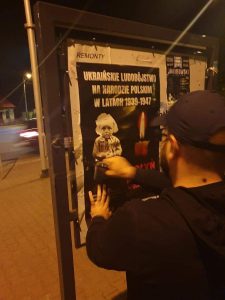 W całej Polsce rozwieszono kilkanaście tysięcy plakatów informujących o ukraińskim ludobójstwie na Polakach! W Szczecinie zamazują przymiotnik „ukraińskie” [ZDJĘCIA+WIDEO]