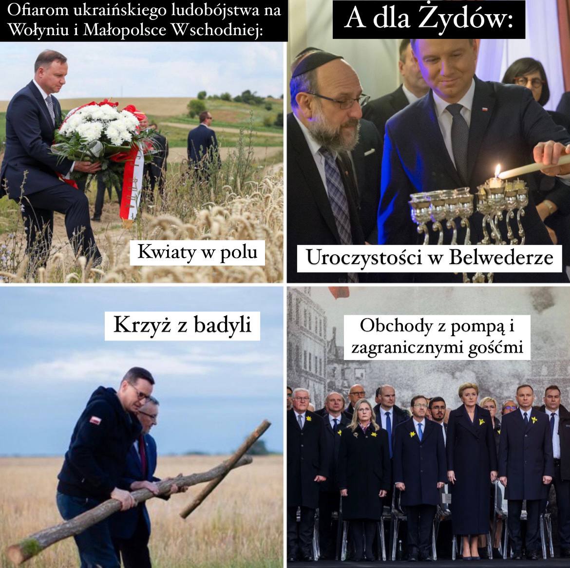 „Obchody” na UA dokładnie takie, jak zaplanowali rządzący bracia starsi w wierze. PMM na wołyńskim polu, a Zelenski w rzymskokatolickiej katedrze odmówili bezgłośnie Kadisz i po sprawie. 'Nie zawracajcie już głowy tym „zbrodniczym Wołyniem”, bo my się tu geostrategicznie pozycjonujemy, a nie grzebiemy w historii;. Gdyby nie nadchodzące wybory i ciągle jeszcze nieokneblowany internet, 80 rocznica prawdopodobnie byłaby przez main stream polityczny i medialny przemilczana jak w poprzednich dekadach.
