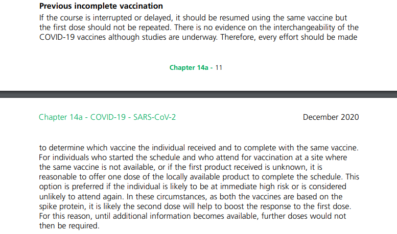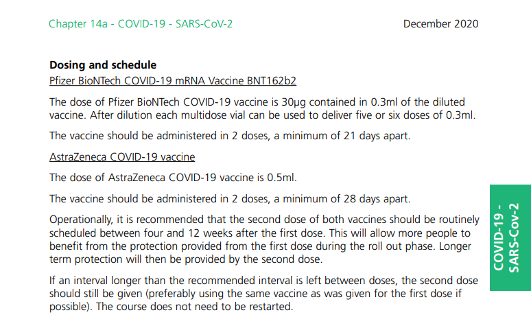 Wielka Brytania zaktualizowała wytyczne ws. szczepień. Jeśli druga dawka szczepionki, którą pierwotnie otrzymał pacjent, nie jest dostępna lub jeśli producent pierwszego zastrzyku nie jest znany, można podać inną szczepionkę w drugim zastrzyku. Zaleca się też – wbrew instrukcji producentów – wydłużenie terminu aplikacji drugiej szczepionki nawet do 12 tygodni, żeby jak najwięcej osób otrzymało pierwszą dawkę. Instrukcja dotyczy szczepionek firm Pfizer i AstraZeneca dopuszczonych do użytku w UK.